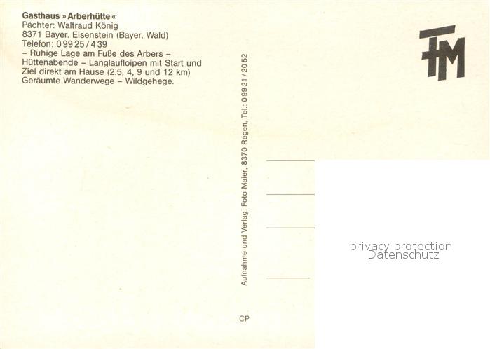 73654009 Bayerisch Eisenstein Gasthaus Arberhuette postalisch nicht gelaufen Erhaltung siehe scans [WerneD78] KatCode: 11110009276115