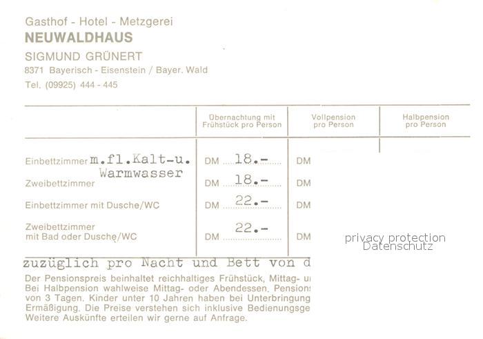 73660377 Bayerisch Eisenstein Gasthof Hotel Neuwaldhaus Restaurant Panorama postalisch nicht gelaufen Werbekarte (keine Postkarte) Erhaltung siehe scans [FriedD77] KatCode: 11110009276115