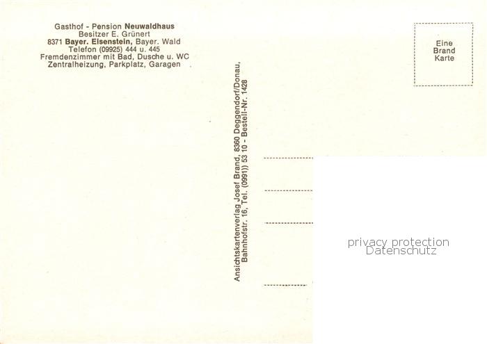 73787461 Bayerisch Eisenstein Gasthof Pension Neuwaldhaus postalisch nicht gelaufen Erhaltung siehe scans [WerneD78] KatCode: 11110009276115
