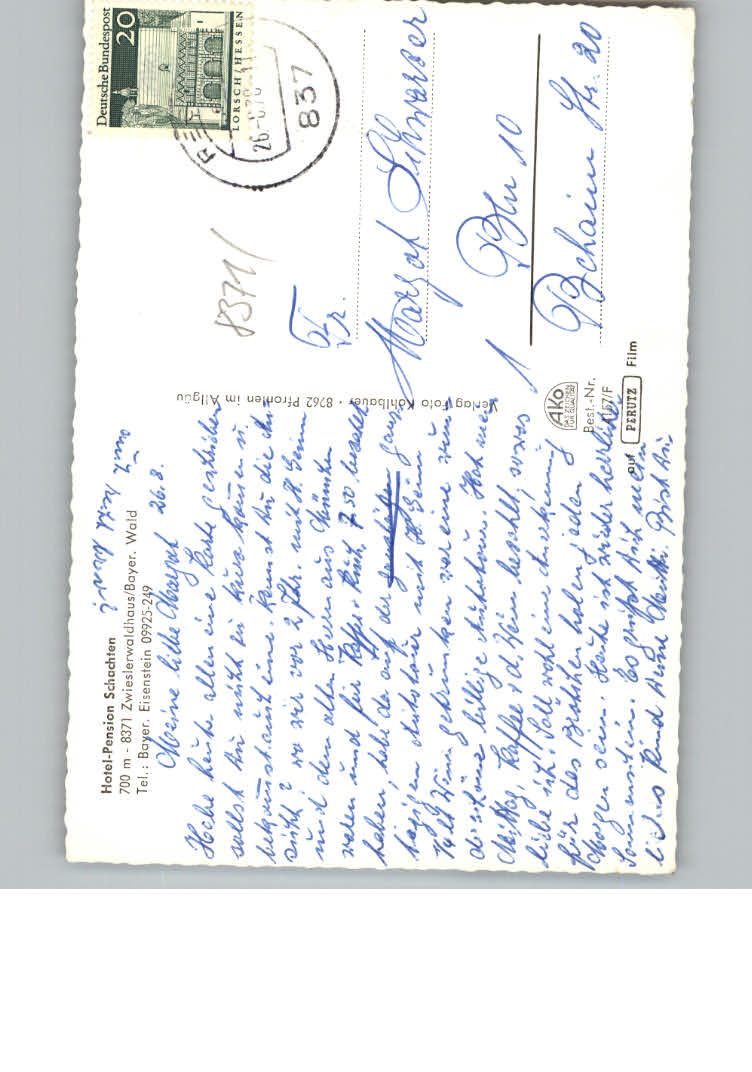 31159606 Bayerisch Eisenstein Hotel Pension Schachten postalisch nicht gelaufen KatCode: