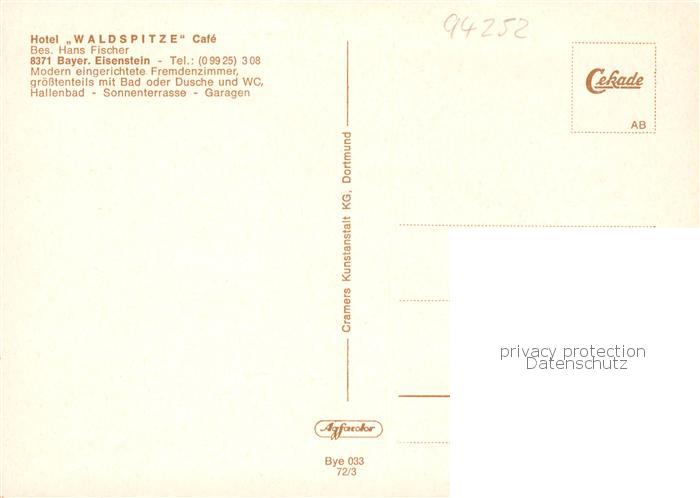 73864862 Bayerisch Eisenstein Hotel Waldspitze Cafe postalisch nicht gelaufen Erhaltung siehe scans [FriedD77] KatCode: 11110009276115