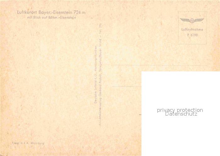 72760301 Bayerisch Eisenstein Luftkurort mit Blick auf Boehmisch Eisenstein Fliegeraufnahme postalisch nicht gelaufen Erhaltung siehe scans [FriedD77] KatCode: 11110009276115