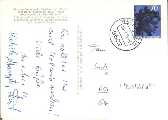 alte Postkarte Bayerisch Eisenstein Pension Sonneneck postalisch gelaufen Erhaltung siehe scans