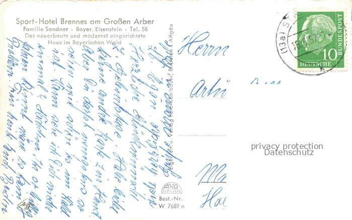 74038616 alte Postkarte Bayerisch Eisenstein Sporthotel Brennes am Grossen Arber postalisch gelaufen Erhaltung siehe scans [WerneD78] KatCode: 11110009276115