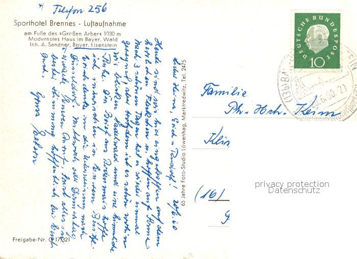 72944004 alte Postkarte Bayerisch Eisenstein Sporthotel Brennes Fliegeraufnahme postalisch gelaufen Erhaltung siehe scans [KathaD81] KatCode: 11110009276115
