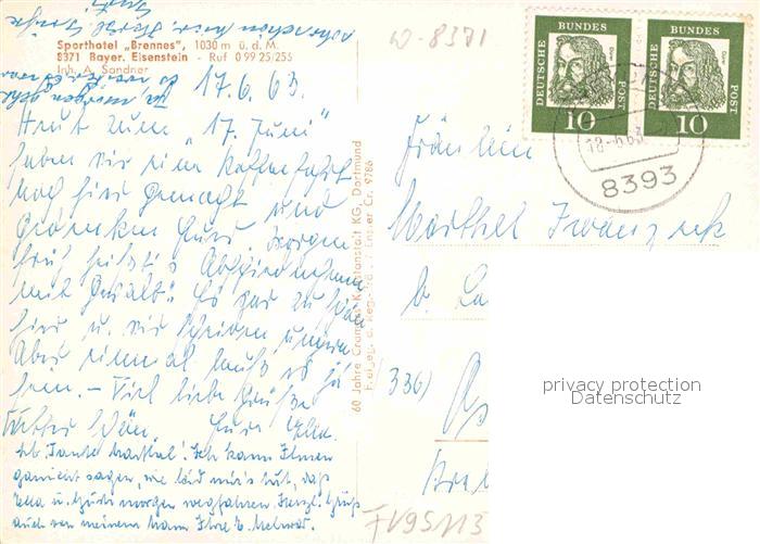 72796634 alte Postkarte Bayerisch Eisenstein Sporthotel Brennes postalisch gelaufen Erhaltung siehe scans [KathaD81] KatCode: 11110009276115