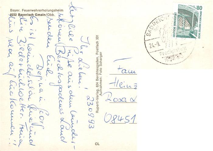 73905174 alte Postkarte Bayerisch Gmain Bayer Feuerwehrerholungsheim postalisch gelaufen Erhaltung siehe scans [FriedD77] KatCode: 11110009172115