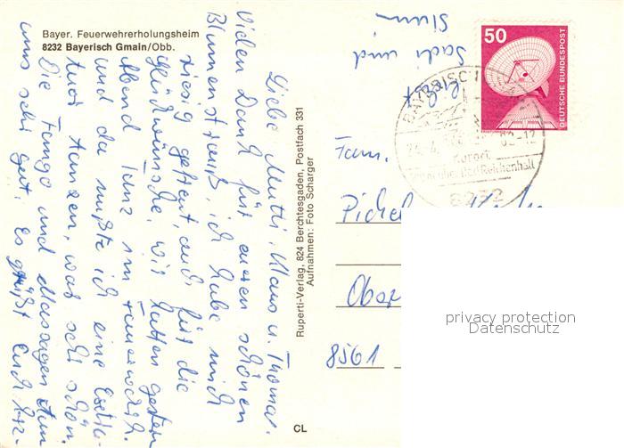73125827 alte Postkarte Bayerisch Gmain Feuerwehrerholungsheim postalisch gelaufen Erhaltung siehe scans [KathaD81] KatCode: 11110009172115