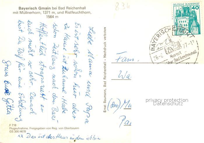 73322912 alte Postkarte Bayerisch Gmain Fliegeraufnahme mit Muellnerorn und Ristfeuchthorn postalisch gelaufen Erhaltung siehe scans [WerneD78] KatCode: 11110009172115