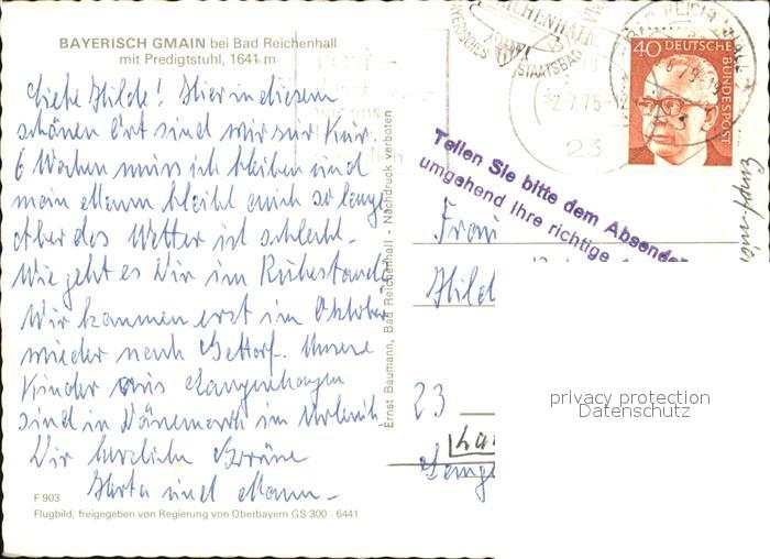 alte Postkarte Bayerisch Gmain Fliegeraufnahme mit Predigtstuhl postalisch gelaufen Erhaltung siehe scans