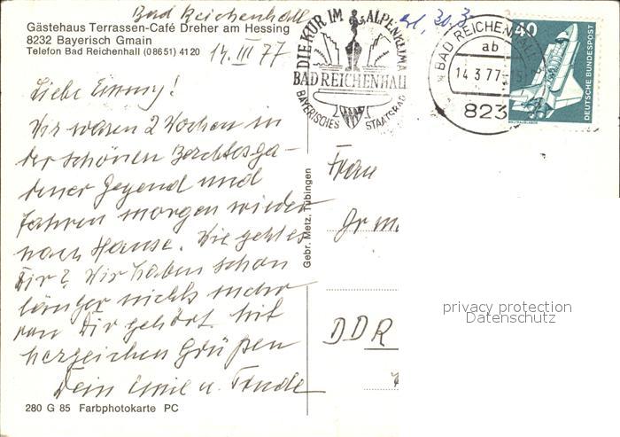 72458099 alte Postkarte Bayerisch Gmain Gaestehaus Terrassen Cafe Dreher am Hessing postalisch gelaufen Erhaltung siehe scans KatCode: 11110009172115