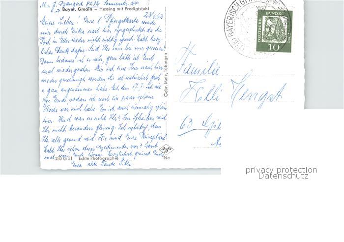 32571963 alte Postkarte Bayerisch Gmain Hessing mit Predigtstuhl postalisch gelaufen Erhaltung siehe scans [WerneD78] KatCode: 11110009172115