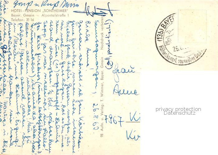 73835197 alte Postkarte Bayerisch Gmain Hotel Pension Sontheimer postalisch gelaufen Erhaltung siehe scans [WerneD78] KatCode: 11110009172115