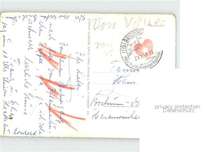 72362180 alte Postkarte Bayerisch Gmain Kirchenpartie mit Zwiesel postalisch gelaufen Erhaltung siehe scans KatCode: 11110009172115