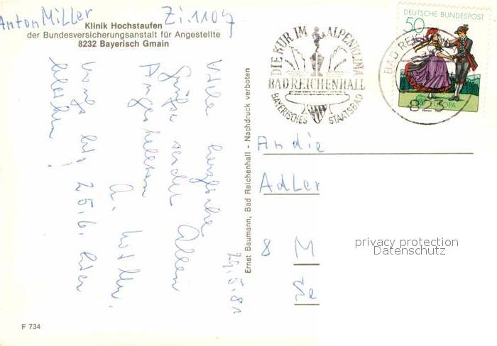 72650694 alte Postkarte Bayerisch Gmain Klinik Hochstaufen der BfA postalisch gelaufen Erhaltung siehe scans [WerneD78] KatCode: 11110009172115