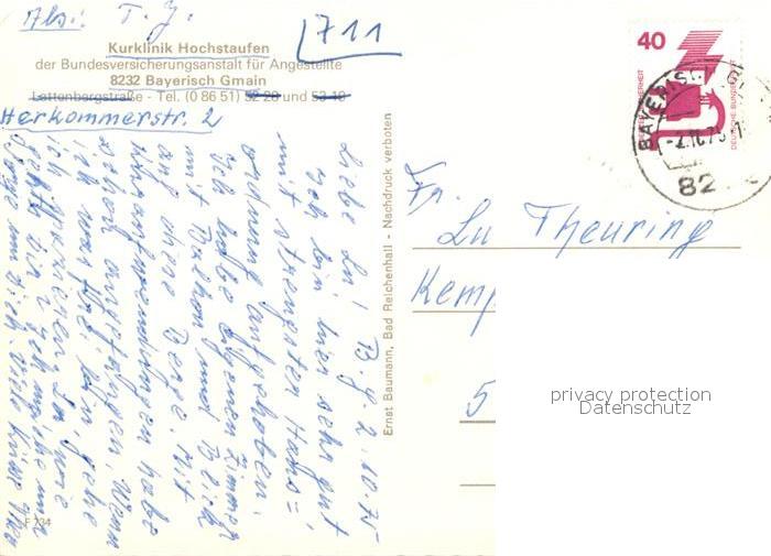 72961735 alte Postkarte Bayerisch Gmain Kurklinik Hochstaufen postalisch gelaufen Erhaltung siehe scans [LiesaD40] KatCode: 11110009172115