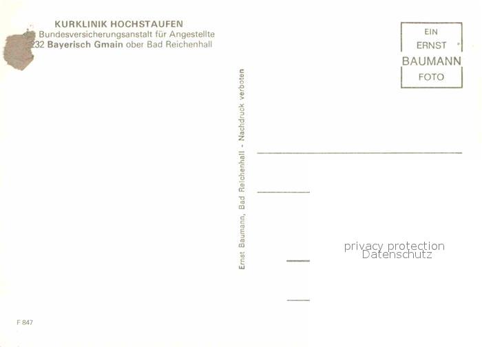72757953 Bayerisch Gmain Kurklinik Hochstaufen postalisch nicht gelaufen Erhaltung siehe scans [NatalD47] KatCode: 11110009172115