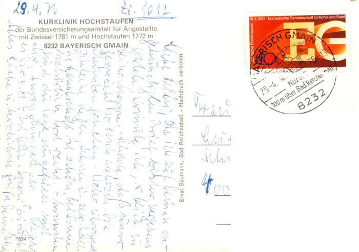 73942649 alte Postkarte Bayerisch Gmain Kurklinik Hochstaufen mit Zwiesel und Hochstaufen postalisch gelaufen Erhaltung siehe scans [FriedD77] KatCode: 11110009172115