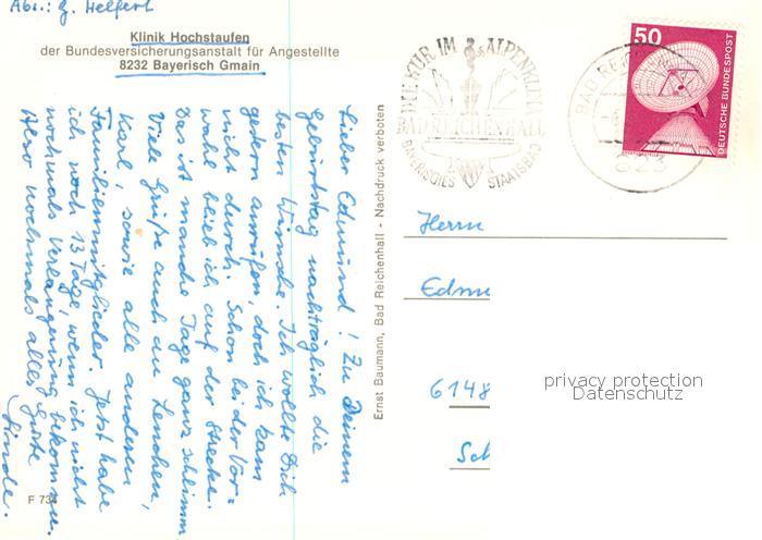 73100909 alte Postkarte Bayerisch Gmain Kurklinik Hochstaufen postalisch gelaufen Erhaltung siehe scans [WerneD78] KatCode: 11110009172115