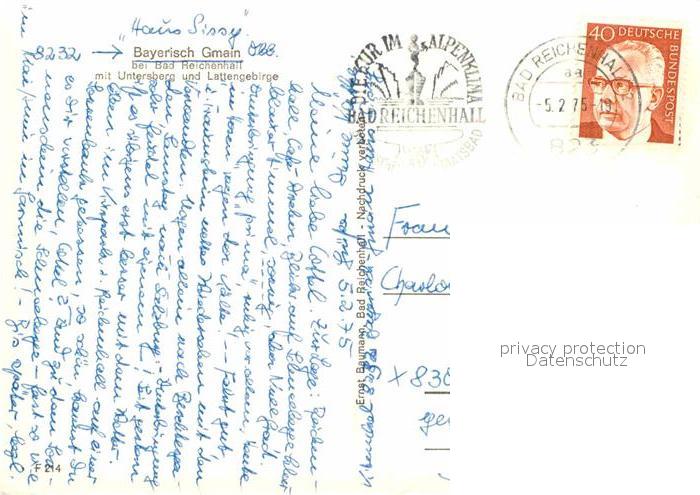 72630148 alte Postkarte Bayerisch Gmain mit Untersberg und Lattengebirge bei Bad-Reichenhall postalisch gelaufen Erhaltung siehe scans [LiesaD40] KatCode: 11110009172115