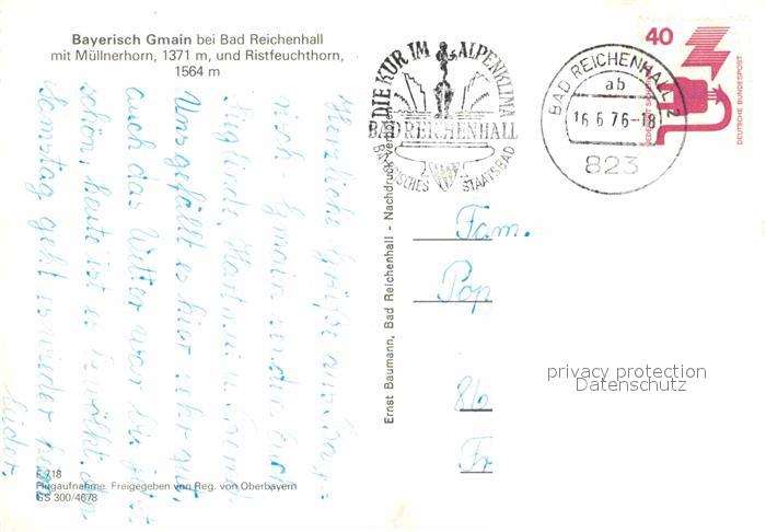72850915 alte Postkarte Bayerisch Gmain Muellmerhorn Ristfeuchtohorn Fliegeraufnahme postalisch gelaufen Erhaltung siehe scans [NatalD47] KatCode: 11110009172115