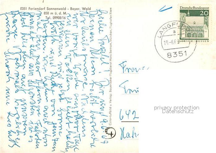 73030446 alte Postkarte Bayerischer Wald Feriendorf Sonnenwald postalisch gelaufen Erhaltung siehe scans [WerneD78] KatCode: 11110009276115