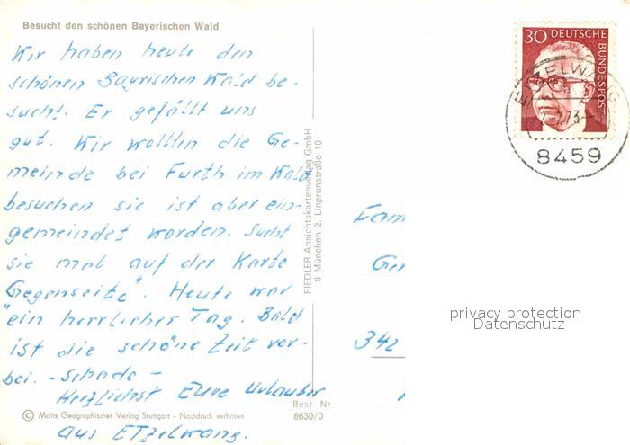 72841566 alte Postkarte Bayerischer Wald Landkarre Furth Waldmuenchen Gleissenberg Windischbergerdorf Chamerad postalisch gelaufen Erhaltung siehe scans [LiesaD40] KatCode: 11110009276115