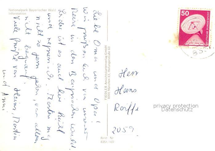 72950777 alte Postkarte Bayerischer Wald Nationalpark Information postalisch gelaufen Erhaltung siehe scans [WerneD78] KatCode: 11110009276115