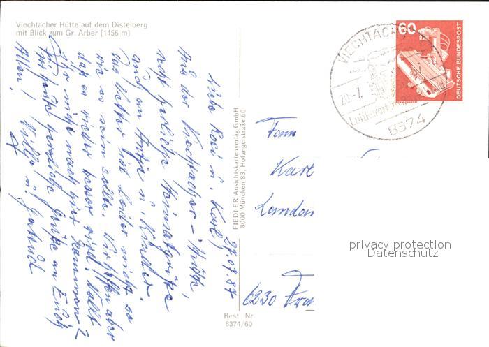 72562909 alte Postkarte Bayerischer Wald Viechtacher Huette Distelberg Blick Grosser Arber postalisch gelaufen Erhaltung siehe scans [KathaD79] KatCode: 11110009276115