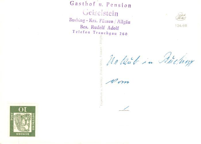 73893986 Bayerniederhofen Gasthof Pension Geiselstein Buching Bayerniederhofen Wankerfleck Bannwaldsee postalisch nicht gelaufen Erhaltung siehe scans [FriedD77] KatCode: 11110009777173