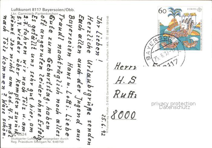 72223944 alte Postkarte Bayersoien Oberammergau Fliegeraufnahme postalisch gelaufen Erhaltung siehe scans KatCode: 11110009180125