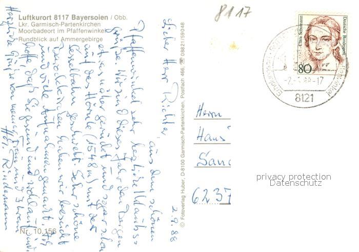73173409 alte Postkarte Bayersoien Oberammergau Pfaffenwinkel Kirche postalisch gelaufen Erhaltung siehe scans [KathaD81] KatCode: 11110009180125