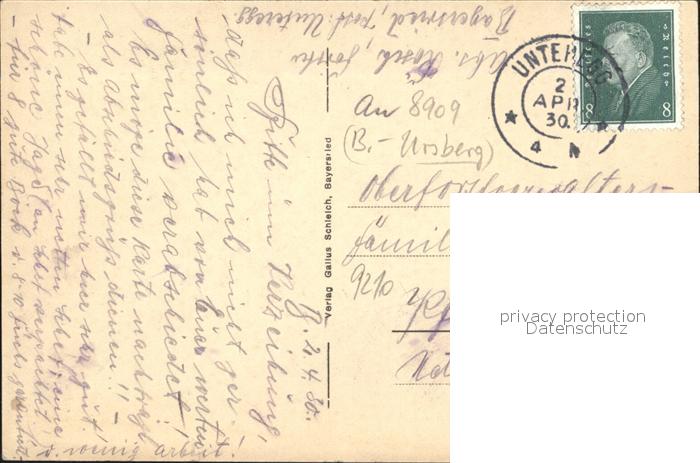 32212353 alte Postkarte Bayersried Totalansicht Brauerei Forstamt postalisch gelaufen Erhaltung siehe scans KatCode: 11110009774116