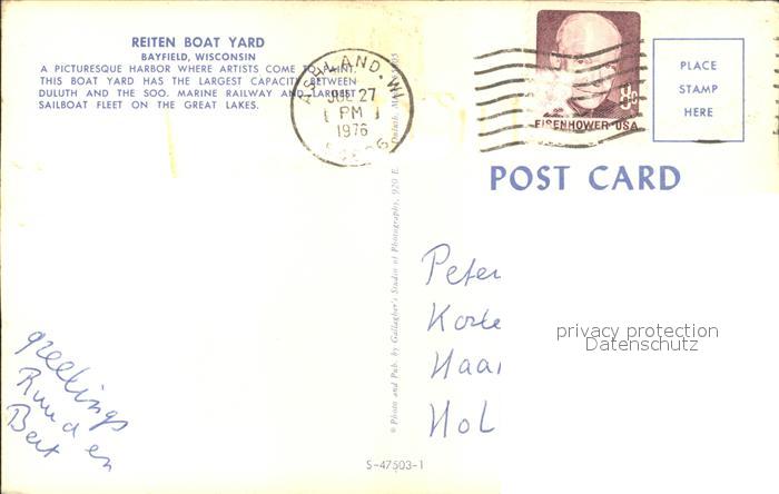 72289709 old postcard Bayfield Wisconsin Reiten Boat Yard postalisch gelaufen Erhaltung siehe scans KatCode: 14140520000000