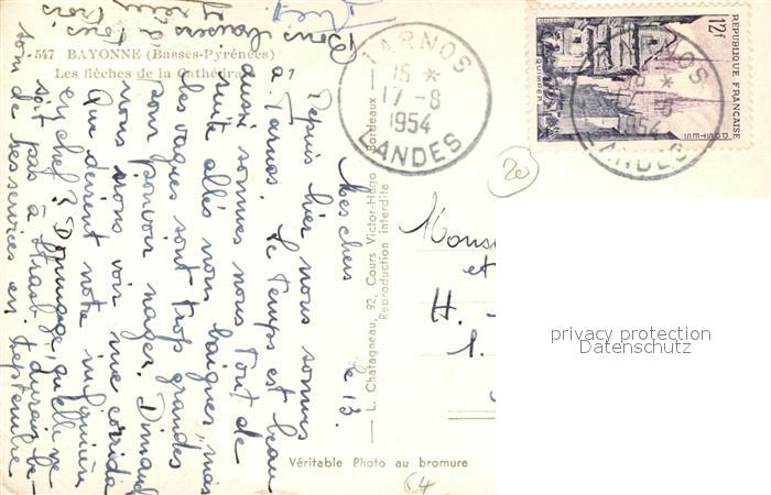 13529887 carte postale Bayonne 64 Cathedrale postalisch gelaufen Erhaltung siehe scans [LiesaD40] KatCode: 11170064164102