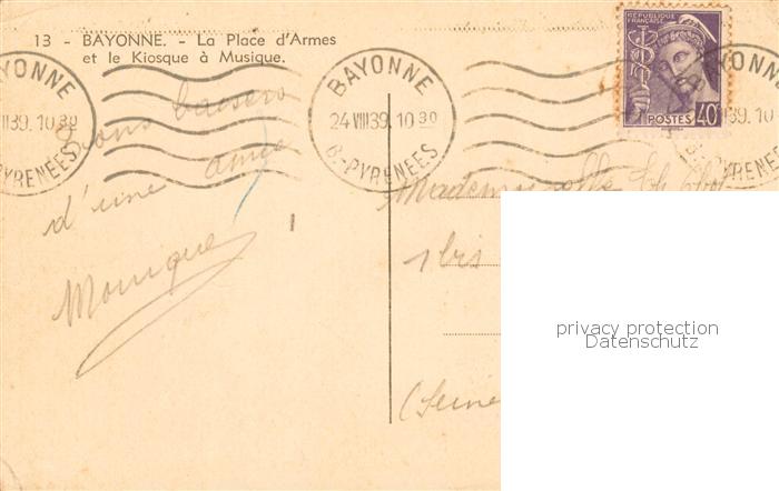 13799559 Bayonne 64 La Place d’Armes et le Kiosque a Musique postalisch gelaufen Erhaltung siehe scans [WerneD78] carte postale Wern Katcode 11170064164102
