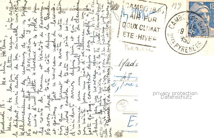 13529888 carte postale Bayonne 64 Nive et Quai des Basques postalisch gelaufen Erhaltung siehe scans [LiesaD40] KatCode: 11170064164102