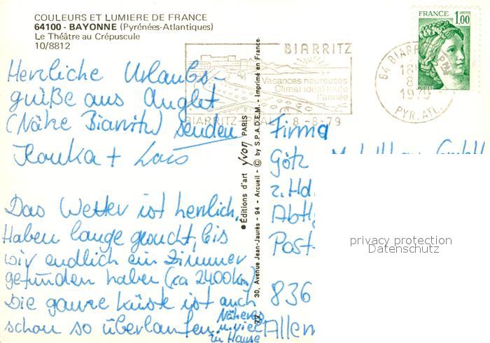 13224093 carte postale Bayonne 64 Theatre au Crepuscule Collection Couleurs et Lumiere de France postalisch gelaufen Erhaltung siehe scans [FriedD77] KatCode: 11170064164102