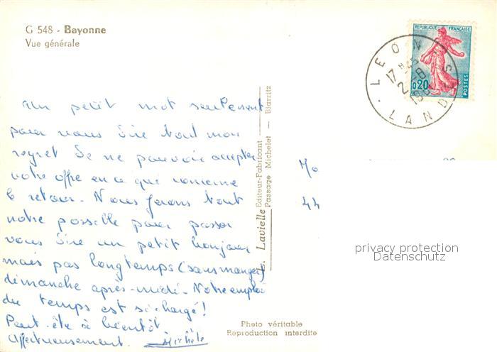 13137870 carte postale Bayonne 64 postalisch gelaufen Erhaltung siehe scans [NatalD47] KatCode: 11170064164102