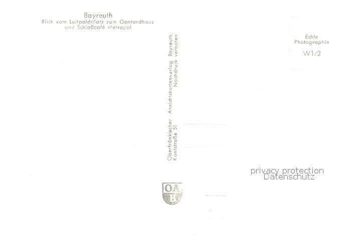 43508955 BAYREUTH Bayern Blick vom Luitpoldplatz zum Gontardhaus Schlo?caf postalisch nicht gelaufen Erhaltung siehe scans [LiesaD40] Lies Katcode 11110009462000