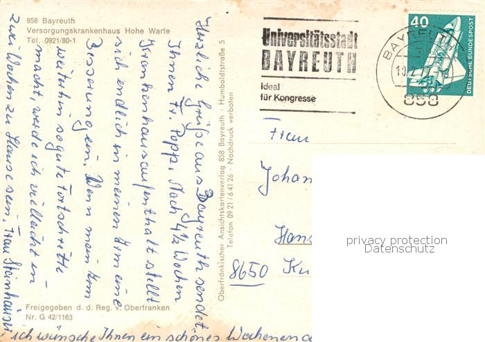 73760642 BAYREUTH Bayern Fliegeraufnahme Versorgungskrankenhaus Hohe Warte postalisch gelaufen Erhaltung siehe scans [LiesaD40] alte Postkarte Lies Katcode 11110009462000