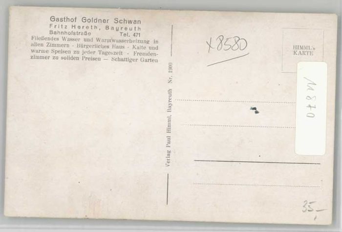 40234891 BAYREUTH Bayern Gasthof Goldner Schwan postalisch nicht gelaufen Alte Ansichtskarte Postkarte Katcode 11110009462000