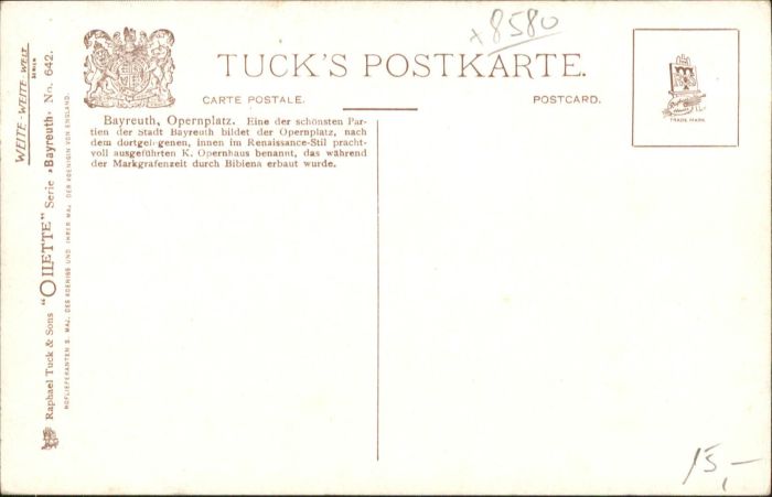 40820493 BAYREUTH Bayern Kuenstler Charles F. Flower Opernplatz postalisch nicht gelaufen Alte Ansichtskarte Postkarte Katcode 11110009462000