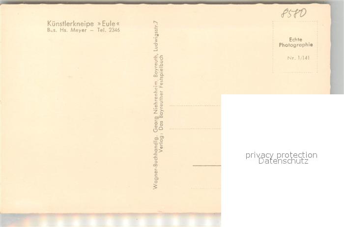 43343695 BAYREUTH Bayern Kuenstlerkneipe Eule postalisch nicht gelaufen Erhaltung siehe scans [WerneD78] Wern Katcode 11110009462000