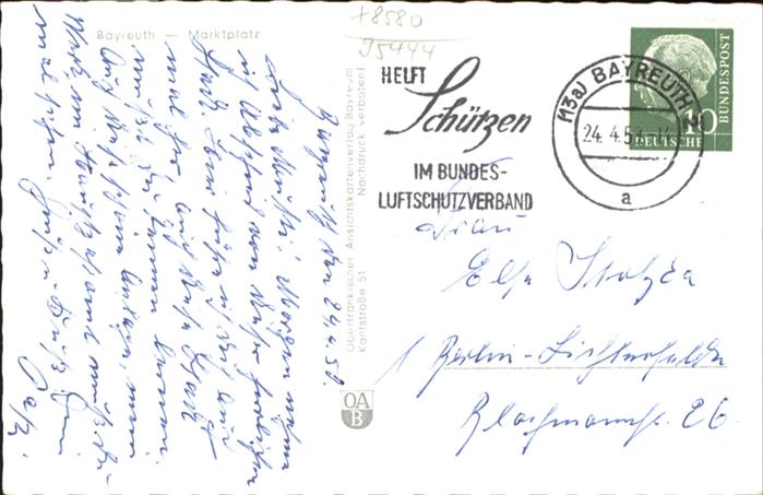40948478 BAYREUTH Bayern Marktplatz postalisch gelaufen Alte Ansichtskarte Postkarte alte Postkarte Katcode 11110009462000