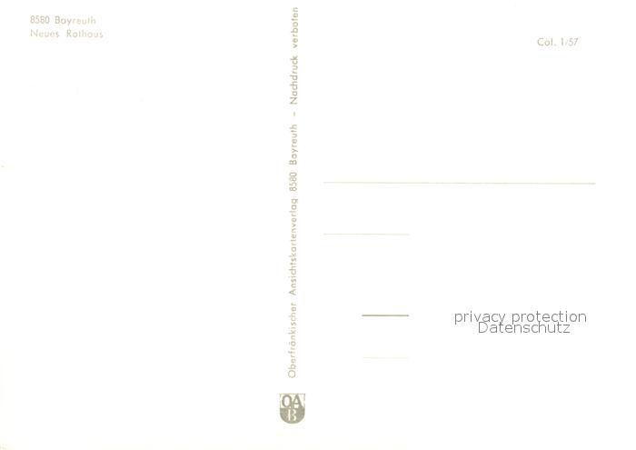 43350025 BAYREUTH Bayern Neues Rathaus postalisch nicht gelaufen Erhaltung siehe scans [FriedD77] Frie Katcode 11110009462000