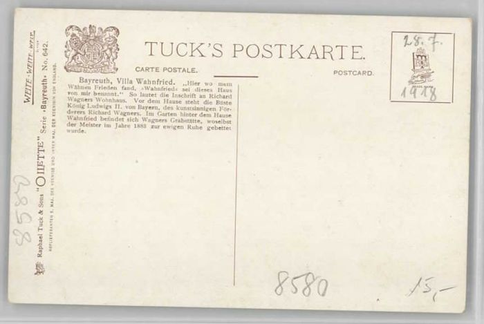 40234145 BAYREUTH Bayern Villa Wahnfried KuenstlerCharles E. Flower postalisch nicht gelaufen Alte Ansichtskarte Postkarte Katcode 11110009462000