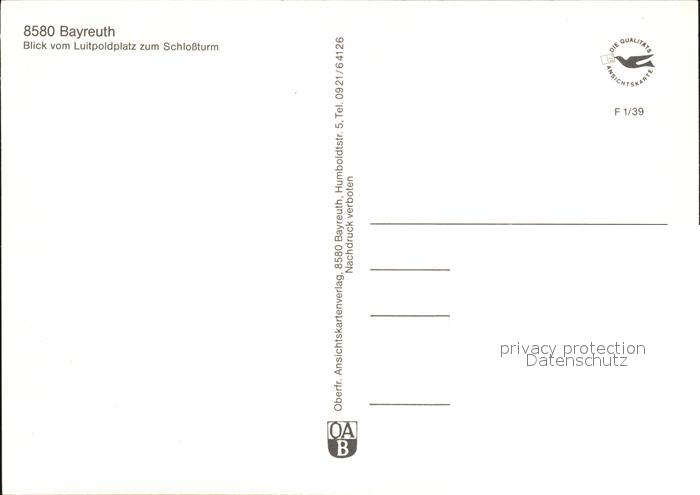 72545209 Bayreuth Blick vom Luitpoldplatz zum Schlossturm postalisch nicht gelaufen Erhaltung siehe scans [KathaD75 kv011box] KatCode: 11110009462000
