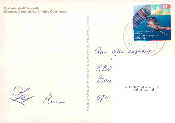 72855936 alte Postkarte Bayreuth Festspielstadt Operncafe Markgraefliches Opernhaus postalisch gelaufen Erhaltung siehe scans [FriedD77] KatCode: 11110009462000