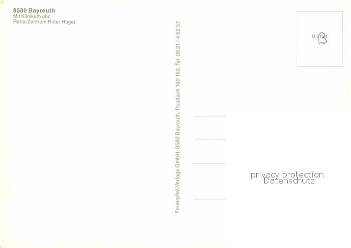 72650649 Bayreuth Fliegeraufnahme mit Klinikum und Rehazentrum Roter Huegel postalisch nicht gelaufen Erhaltung siehe scans [WerneD78] KatCode: 11110009462000